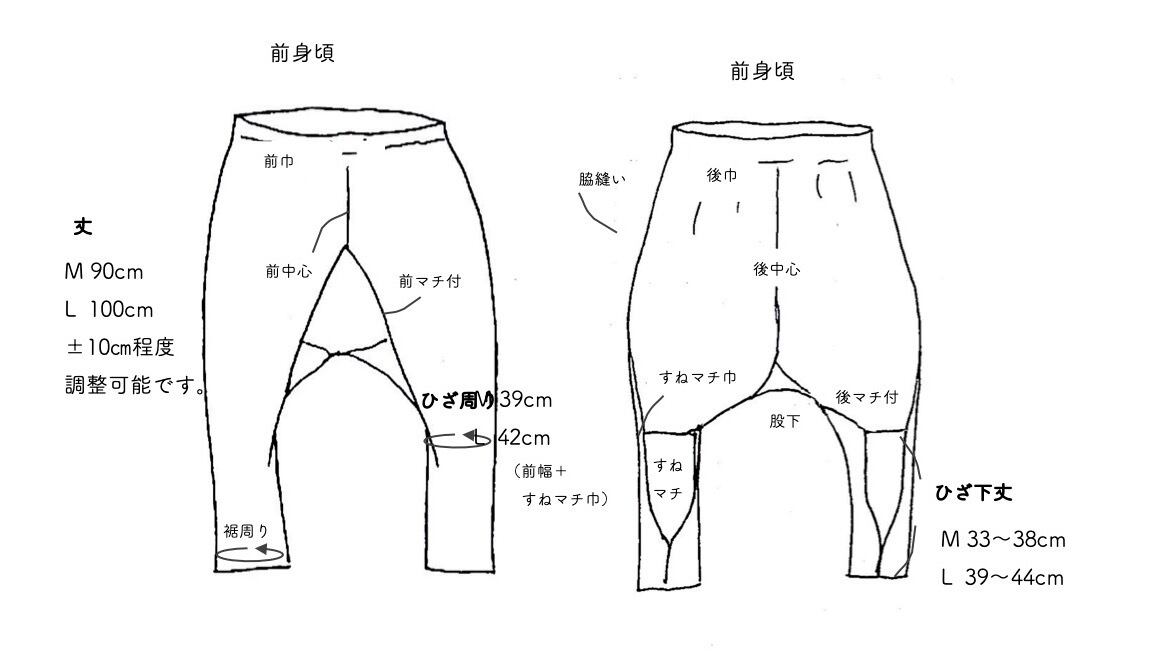 L 丈100㎝前後(身長160〜175程度) ひざ周り 42㎝